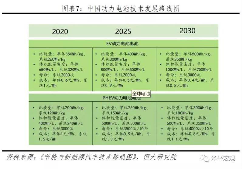 2)2025年應(yīng)滿足400km以上純電動(dòng)汽車需求:?jiǎn)误w能量密度達(dá)400Wh/kg和800Wh/L、單體比功率達(dá)1000W/kg、單體成本降至0.5元/Wh、循環(huán)壽命2000次。