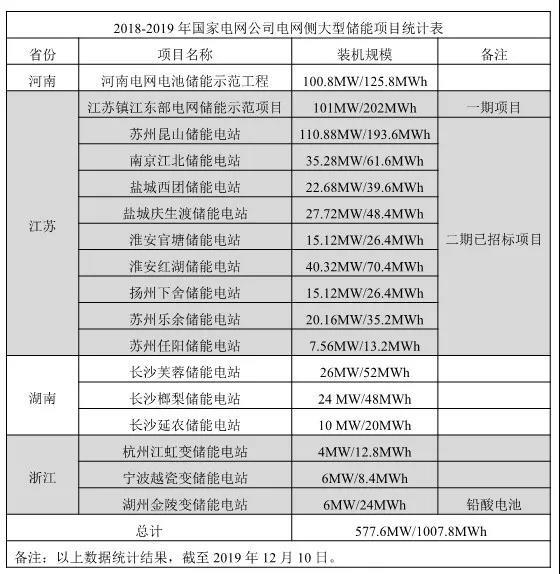 其中電網(wǎng)側(cè)儲(chǔ)能建設(shè)項(xiàng)目或規(guī)劃有: