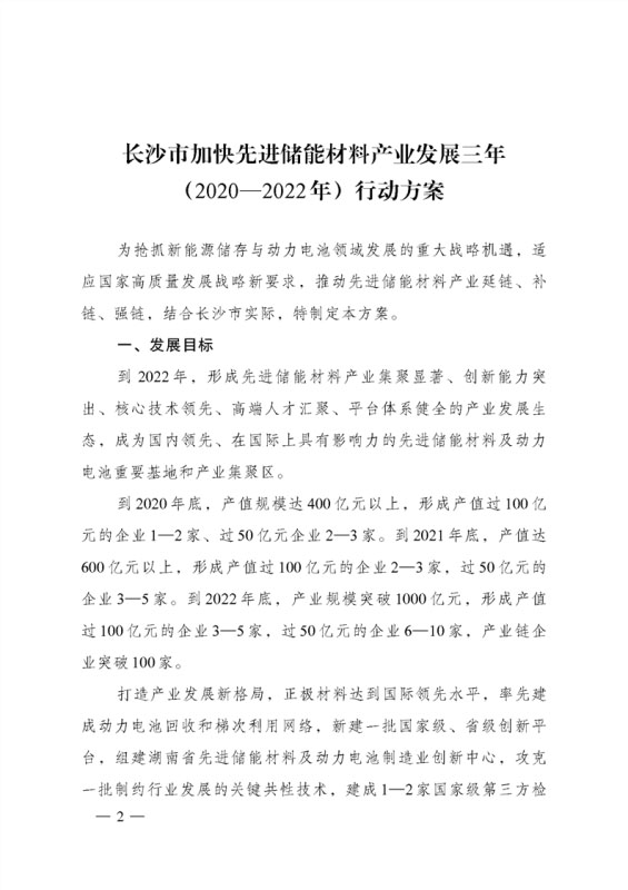 中國儲能網訊:長沙市人民政府辦公廳印發(fā)《長沙市加快先進儲能材料產業(yè)發(fā)展三年(2020-2022年)行動方案》,提出到2022年,形成先進儲能材料產業(yè)集聚顯著、創(chuàng)新能力突出、核心技術領先、高端人才匯聚、平臺體系健全的產業(yè)發(fā)展生態(tài).成為國內領先、在國際上具有影響力的先進儲能材料及動力電池重要基地和產業(yè)集聚區(qū)。