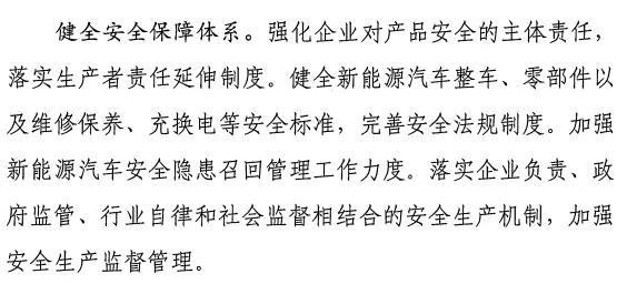 《征求意見稿》提出,強化企業(yè)對產(chǎn)品安全的主體責(zé)任,落實生產(chǎn)者責(zé)任延伸制度。健全新能源汽車整車、零部件以及維修保養(yǎng)、充換電等安全標(biāo)準(zhǔn),完善安全法規(guī)制度。加強新能源汽車安全隱患召回管理工作力度。落實企業(yè)負責(zé)、政府監(jiān)管、行業(yè)自律和社會監(jiān)督相結(jié)合的安全生產(chǎn)機制,加強安全生產(chǎn)監(jiān)督管理。