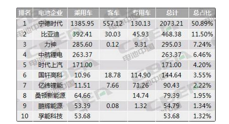 圖2:2019年10月動(dòng)力電池企業(yè)TOP10排名 單位:MWh