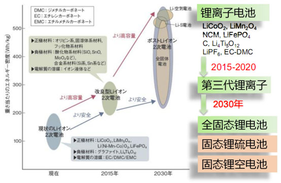 (NEDO 2008年發(fā)布的全固態(tài)二次電池研發(fā)路線圖)