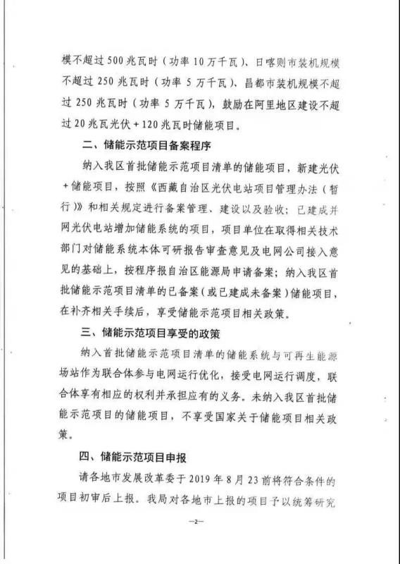 西藏首批光儲示范項目初審申報截止時間為8月23日。