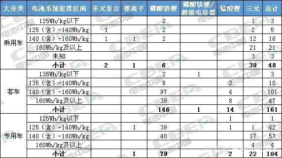 根據2019年財政補貼政策,進入本批次推薦目錄的48款純電動乘用車車型中,系統(tǒng)能量密度在125(含)-140Wh/kg的車型有5款;140(含)-160Wh/kg的車型有16款;160Wh/kg及以上的車型有21款,且配套電池全部為三元電池。其余的6款車型中,3款電池系統(tǒng)能量密度低于125Wh/kg,3款電池系統(tǒng)能量密度未知。