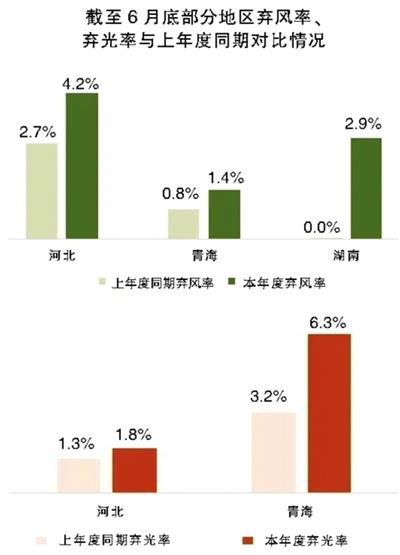 河北、青海、湖南存在新能源棄電加重的潛在風險。河北張家口、承德以及青海海西州等局部電網(wǎng)送出受限問題尚未解決,湖南在進入汛期后本地新能源消納壓力持續(xù)增加。截至6月底,河北棄風率、棄光率同比分別增長1.5、0.4個百分點,青海棄風率、棄光率同比分別增長0.6、3.1個百分點,湖南棄風率同比增長2.9個百分點,上述地區(qū)新能源棄電存在進一步增加的風險,需要重點關注。