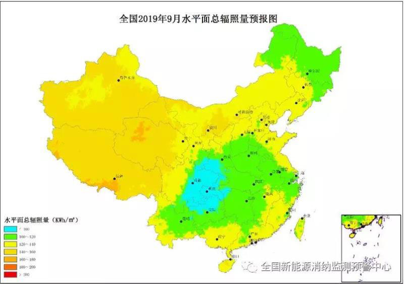 附圖6 全國2019年9月水平面總輻照量預(yù)報圖