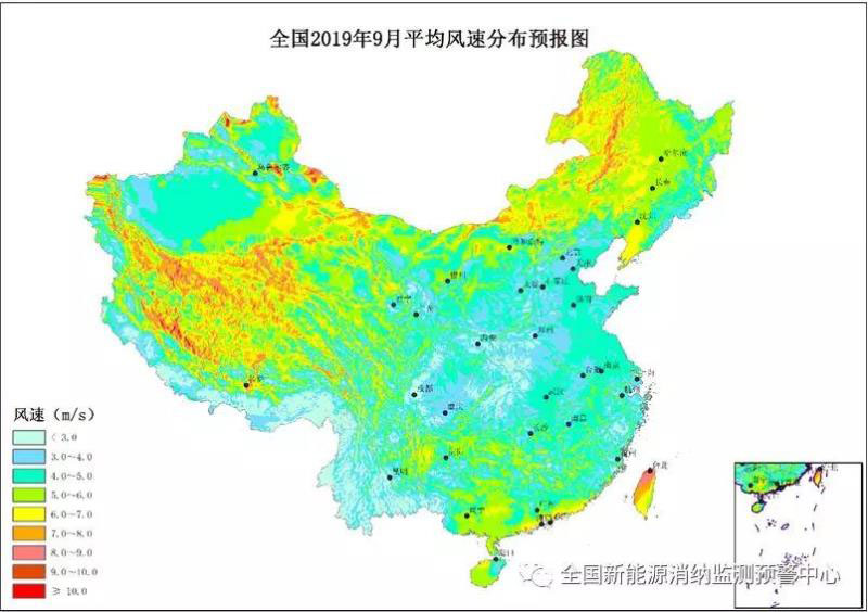 附圖5 全國2019年9月平均風(fēng)速分布預(yù)報圖