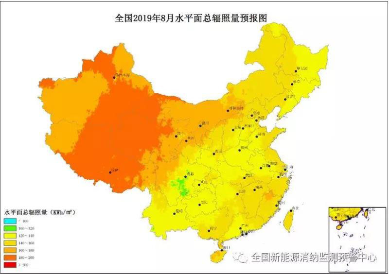 附圖4 全國2019年8月水平面總輻照量預(yù)報圖
