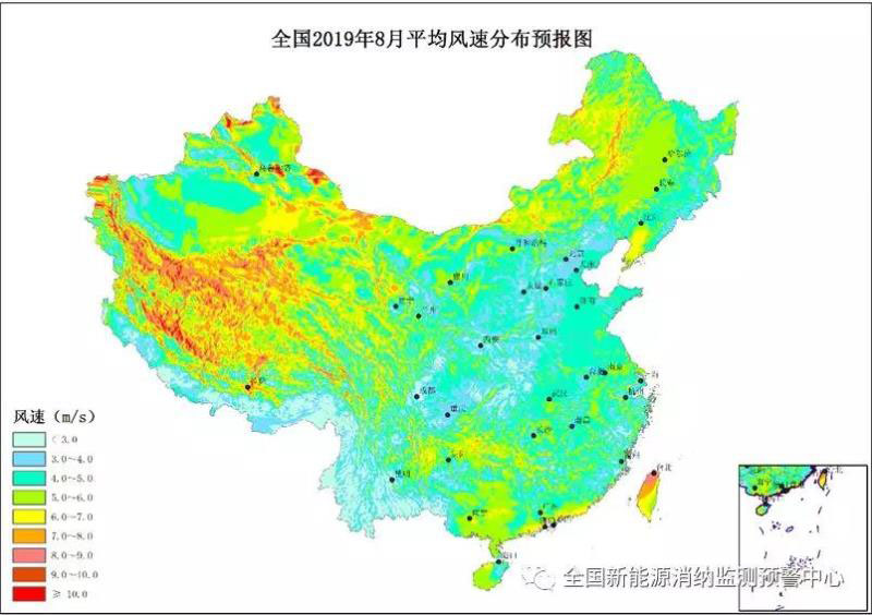 附圖3 全國2019年8月平均風(fēng)速分布預(yù)報圖