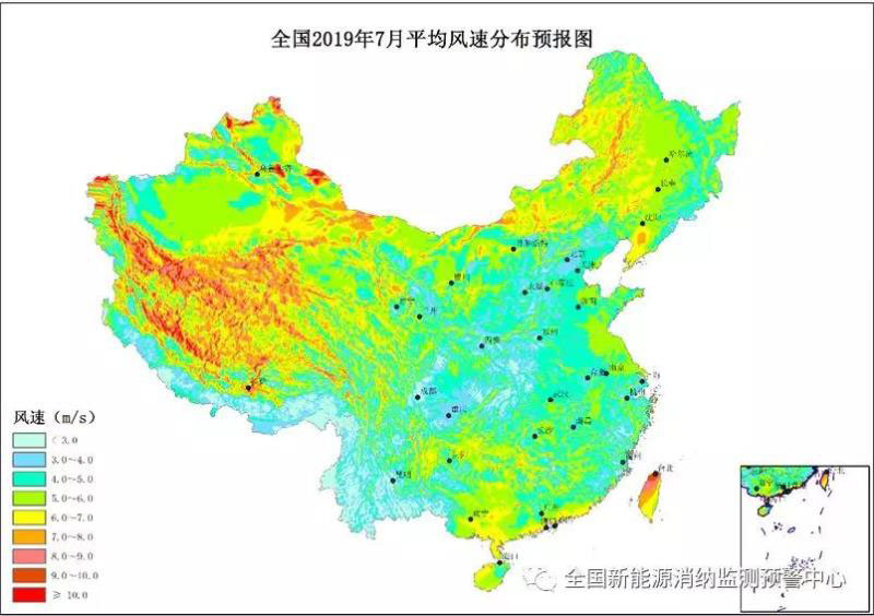 附圖1 全國2019年7月平均風(fēng)速分布預(yù)報圖