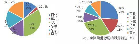 二季度各區(qū)域新增(左)、累計(右)并網(wǎng)風(fēng)電裝機(萬千瓦)