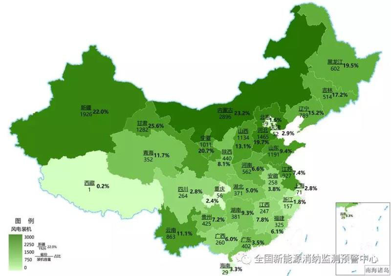截至6月底各地區(qū)累計風(fēng)電裝機(萬千瓦)及占本地區(qū)總裝機比重