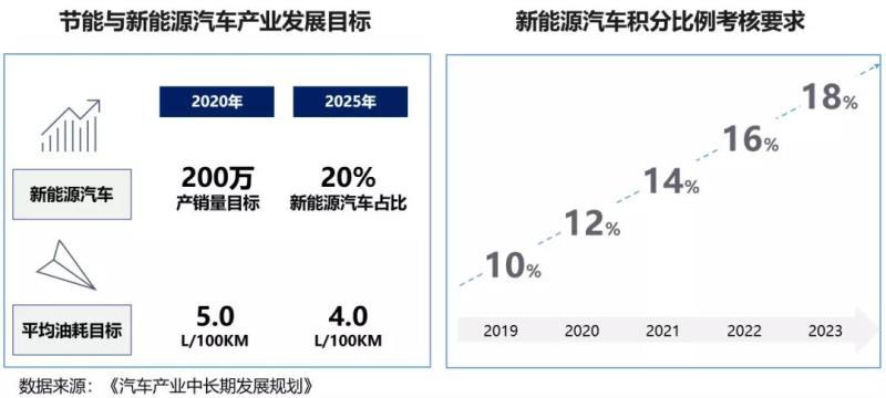 《征求意見(jiàn)稿》提出了2021-2023年的新能源積分比例要求,2021-2023年度考核比例分別為14%、16%、18%,2024年度及以后的積分考核要求另行制定。對(duì)于此種分階段管理的方法,我們認(rèn)為十分符合我國(guó)現(xiàn)階段產(chǎn)業(yè)現(xiàn)狀,盡管國(guó)家節(jié)能與新能源汽車產(chǎn)業(yè)發(fā)展目標(biāo)均指向2025年,但是未來(lái)新能源汽車產(chǎn)業(yè)發(fā)展趨勢(shì)和政策環(huán)境仍存在較大的不確定性,先期提出2021-2023年的分階段管理政策,能切實(shí)降低后續(xù)年份的政策實(shí)施風(fēng)險(xiǎn)。