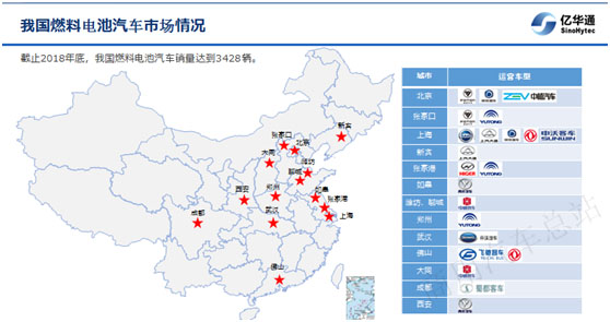 在商業(yè)化示范應(yīng)用方面,搭載億華通氫燃料電池發(fā)動(dòng)機(jī)的車輛參與了“聯(lián)合國燃料電池汽車三期示范”以及多個(gè)國際重大活動(dòng)。目前,搭載億華通動(dòng)力系統(tǒng)的公交車已經(jīng)在在張家口、北京、鄭州、張家港、上海等多個(gè)城市公交系統(tǒng)進(jìn)行商業(yè)化運(yùn)營,平均每天運(yùn)營里程約250公里。其中,在張家口的74輛氫燃料電池公交車,經(jīng)歷了2018年整個(gè)冬季低溫環(huán)境考驗(yàn),每天運(yùn)營時(shí)間超過14小時(shí),單車最長運(yùn)行已達(dá)到9萬公里,所有74臺(tái)車都超過5萬公里運(yùn)行里程;在北京有140輛氫燃料電池團(tuán)體班車,自2017年6月以來,平均每臺(tái)每天運(yùn)行100公里,物流車也于2019年1月批量投放市場。