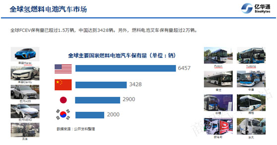 歐、美、日、韓、中等國家都制定氫能和燃料電池發(fā)展的國家戰(zhàn)略,氫燃料電池汽車產(chǎn)業(yè)已經(jīng)進(jìn)入商業(yè)化初期階段。據(jù)統(tǒng)計(jì),全球氫燃料電池汽車保有量已超過1.5萬輛。另外,氫燃料電池叉車保有量超過2萬輛。我國政府高度重視氫能和燃料電池發(fā)展,在多個(gè)國家規(guī)劃中,明確提出將氫能與燃料電池作為國家重點(diǎn)任務(wù)大力發(fā)展。目前我國是氫燃料電池商用車推廣數(shù)量最多的國家,據(jù)中汽協(xié)統(tǒng)計(jì),從2016-2018年累計(jì)氫燃料電池汽車銷量達(dá)到3428輛。在北京、張家口、上海、張家港、濰坊、武漢、鄭州、成都等多個(gè)城市都開啟了燃料電池汽車商業(yè)化示范運(yùn)營。