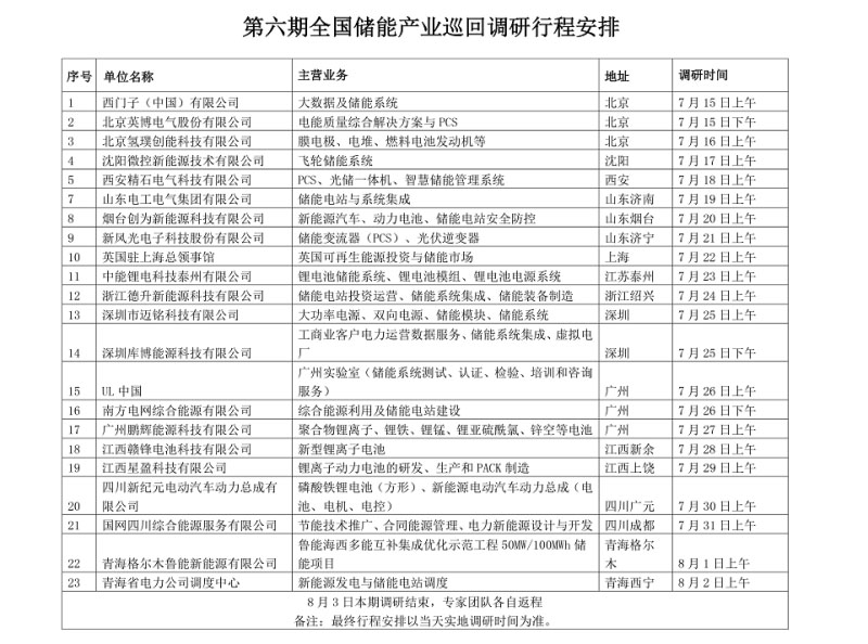 為進(jìn)一步了解國內(nèi)儲能產(chǎn)業(yè)技術(shù)路線、市場格局與相關(guān)項目建設(shè)情況,并向行業(yè)主管部門提出合理化建議。中國化學(xué)與物理電源行業(yè)協(xié)會儲能應(yīng)用分會決定聯(lián)合中國電工技術(shù)學(xué)會電池專業(yè)委員會、中國儲能網(wǎng)將于近期組織開展2019年度第六期全國儲能產(chǎn)業(yè)巡回走訪調(diào)研工作,現(xiàn)將具體行程安排通知如下:
