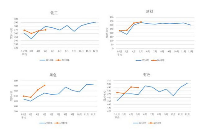 圖3 2018、2019年重點(diǎn)行業(yè)分月用電量情況
