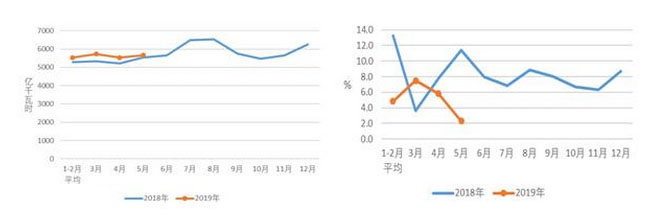 圖1 2018、2019年分月全社會(huì)用電量及其增速
