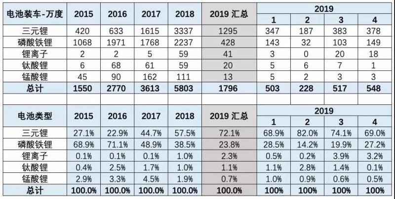 2019年1-4月磷酸鐵鋰裝車臺(tái)數(shù)下降到8%。未來(lái)的低成本優(yōu)勢(shì)明顯。