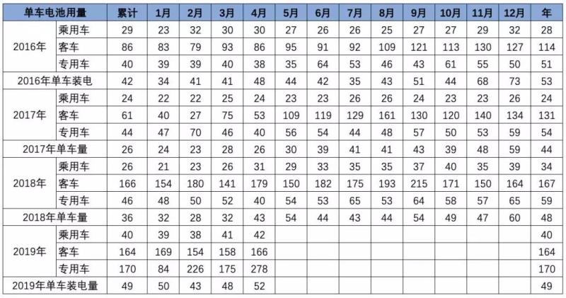 2019年平均單車裝電量達(dá)到49度,其中4月是52度,而增長(zhǎng)的主要原因是專用車的裝電量的提升到很高電量。相對(duì)2018年4月的43度電,今年的52度提升明顯。