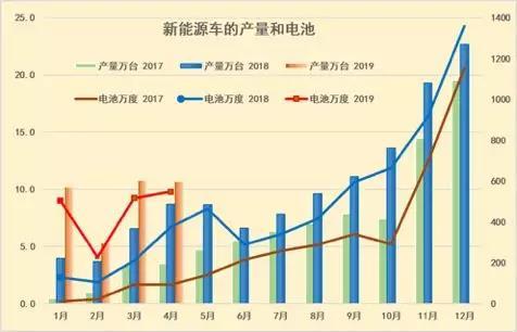 從2018年年末到2019年1-4月的汽車走勢(shì)看,2019年的電池需求是較好增長(zhǎng)狀態(tài),2019年新能源車新補(bǔ)貼政策的波段釋放需求和實(shí)現(xiàn)供需的逐步標(biāo)準(zhǔn)提升的的放量的拉動(dòng)效果較好。