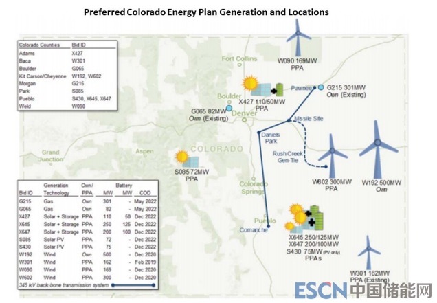 XCEL公司從400多個(gè)的投標(biāo)中選擇了11個(gè)總裝機(jī)容量為2221兆瓦的項(xiàng)目。目前已獲科羅拉多州公共事業(yè)委員會批準(zhǔn),其中包括三個(gè)太陽能+儲能項(xiàng)目,太陽能發(fā)電設(shè)施的裝機(jī)總?cè)萘繛?60MW,電池儲能系統(tǒng)的容量為275MW/1,000MWh。