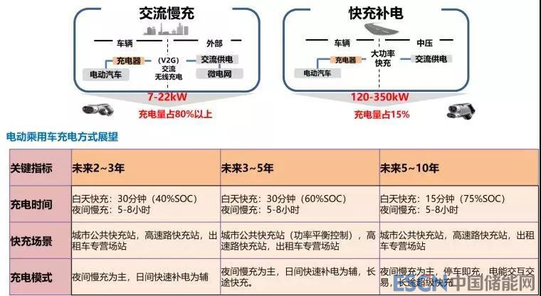 與此同時(shí),世界上最嚴(yán)排放法規(guī)國六標(biāo)準(zhǔn)將在國內(nèi)實(shí)施,傳統(tǒng)汽車技術(shù)將進(jìn)一步復(fù)雜化,導(dǎo)致成本上升,使新能源汽車與傳統(tǒng)燃油車相比的性價(jià)比拐點(diǎn)提前到來。據(jù)此,中國純電動(dòng)汽車的推廣進(jìn)程預(yù)測(cè)如圖1所示。相應(yīng)的電動(dòng)乘用車充電方式預(yù)測(cè)如圖2所示。