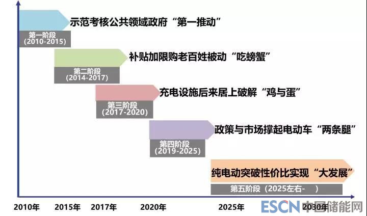 中國儲(chǔ)能網(wǎng)訊:我國新能源汽車技術(shù)路線經(jīng)歷了四個(gè)發(fā)展階段,2003年-2005 年:國家中長(zhǎng)期科技發(fā)展規(guī)劃確立了節(jié)能與新能源汽車戰(zhàn)略(低能耗與新能源汽車);2009年-2012年:科技部與工信部發(fā)展規(guī)劃確立了“純電驅(qū)動(dòng)”技術(shù)轉(zhuǎn)型戰(zhàn)略;2014年:發(fā)展新能源汽車受到中央領(lǐng)導(dǎo)核心的重視,習(xí)近平總書記親自確立了發(fā)展新能源汽車的汽車強(qiáng)國戰(zhàn)略,開啟了中國新能源汽車產(chǎn)業(yè)化新階段;2018年11月:全國政協(xié)召開“促進(jìn)新能源汽車產(chǎn)業(yè)健康發(fā)展”雙周座談會(huì),一些委員建議研究制定面向 2035年新能源汽車發(fā)展戰(zhàn)略規(guī)劃,盡快明確分類別、分地區(qū)的禁售燃油車時(shí)間表,穩(wěn)定產(chǎn)業(yè)發(fā)展預(yù)期,開啟了新一輪戰(zhàn)略討論的序幕。