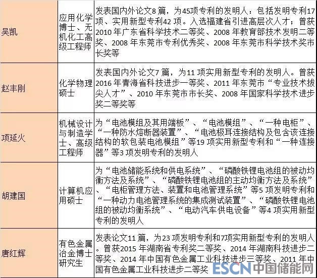 寧德時(shí)代的核心技術(shù)主要來(lái)源于以吳凱、趙豐剛、項(xiàng)延火、胡建國(guó)、唐紅輝等為核心的技術(shù)研發(fā)團(tuán)隊(duì)以自主研發(fā)的方式進(jìn)行的技術(shù)積累。這5名核心技術(shù)人員所取得的專(zhuān)業(yè)資質(zhì)、重要科研成果和獲獎(jiǎng)情況如下: