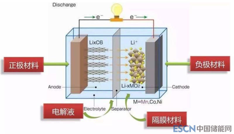 電池內(nèi)部,金屬鋰在負(fù)極失去電子被氧化,成為鋰離子,通過(guò)電解質(zhì)向正極轉(zhuǎn)移;正極材料得到電子被還原,被正極過(guò)來(lái)的鋰離子中和。電解質(zhì)的理想作用,是運(yùn)送且僅運(yùn)送鋰離子。電池外部,電子從負(fù)極通過(guò)外界電路轉(zhuǎn)移到正極,中間進(jìn)行做功。理想情況下,電解質(zhì)應(yīng)該是好的鋰離子的載體,但絕不能是好的電子載體。因此在沒(méi)有外界電路時(shí),電子無(wú)法在電池內(nèi)部從負(fù)極轉(zhuǎn)移到正極;只有存在外界電路時(shí),電子轉(zhuǎn)移才能進(jìn)行。
