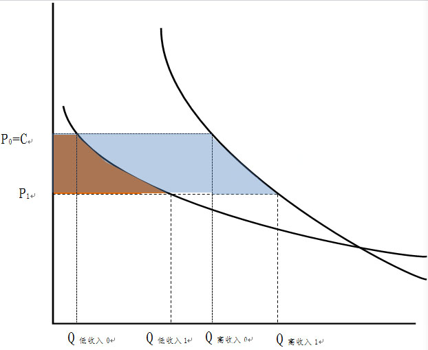 圖3 交叉補(bǔ)貼對(duì)不同收入水平居民的福利影響