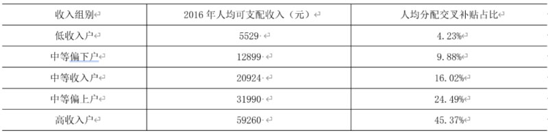 表1 “普惠制”特征下交叉補(bǔ)貼的人均分布情況