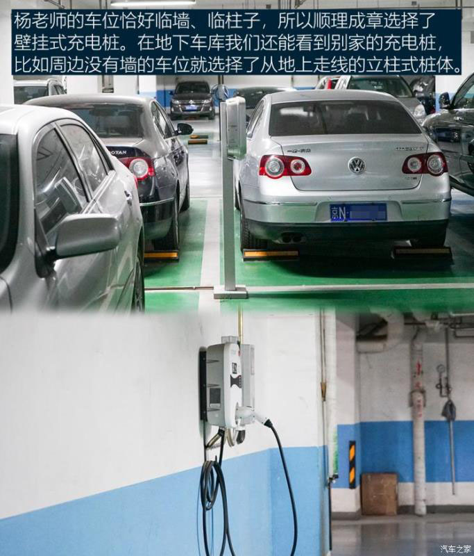 在充電樁的選擇上,一般供應(yīng)商可以提供壁掛式或立柱式兩種充電樁,具體情況可以向供應(yīng)商咨詢。對(duì)于地上停車位來(lái)說(shuō),立柱式充電樁居多,而楊鵬老師的地下車位恰好臨墻,也就順理成章選擇了壁掛式充電樁。