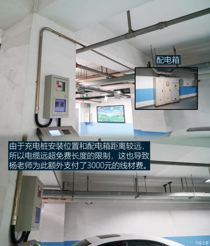 楊鵬老師所在住宅區(qū)配備了地下車庫(kù)以及地上停車位,對(duì)于沒(méi)有固定車位的車主,該住宅區(qū)不允許用戶安裝家充樁,而楊老師擁有地下車位,所以具備基礎(chǔ)條件。此外,安裝充電樁對(duì)電路容積有一定的要求,距離楊老師車位最近的配電箱可以滿足充電樁的電容要求,也就不存在擴(kuò)容了,否則還需擴(kuò)容才能使用。