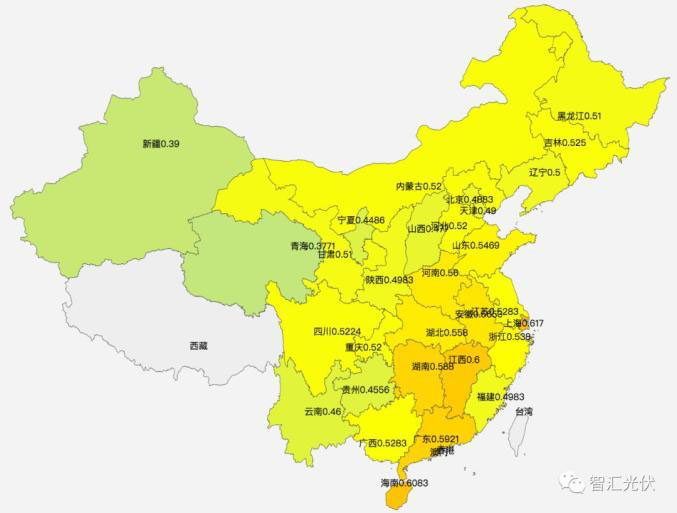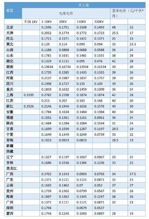 說(shuō)明:1)內(nèi)蒙電價(jià)取蒙東、蒙西的平均值;2)河北的電價(jià)取冀北、冀南的平均值;3)新疆取烏魯木齊的數(shù)據(jù)。
