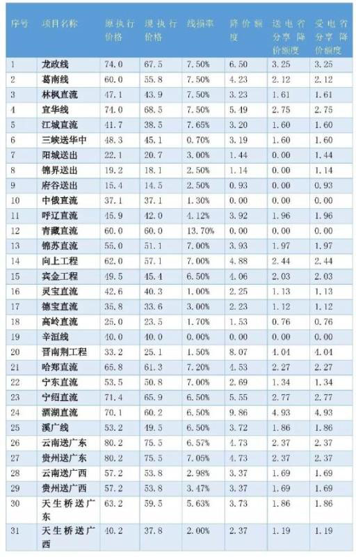 在今年4月份國(guó)家出臺(tái)政策降低跨省跨區(qū)專(zhuān)項(xiàng)工程輸電價(jià)格,跨省跨區(qū)價(jià)格平均下降3.55厘/度,降幅約6.9%。
