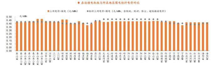 核電標(biāo)桿上網(wǎng)電價(jià)高于核電機(jī)組所在地燃煤機(jī)組標(biāo)桿上網(wǎng)電價(jià)的地區(qū),執(zhí)行當(dāng)?shù)厝济簷C(jī)組標(biāo)桿上網(wǎng)電價(jià)。