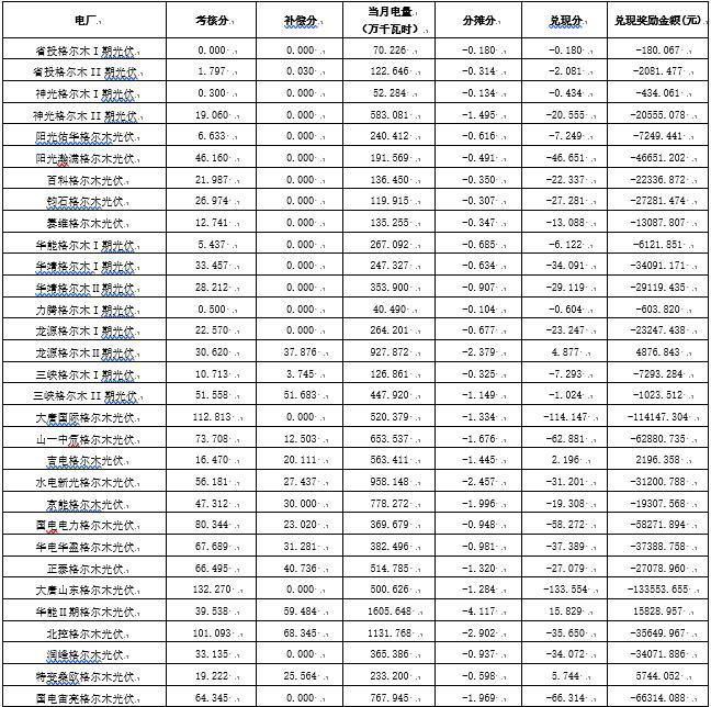根據(jù)《國家能源局西北監(jiān)管局關于印發(fā)<西北區(qū)域發(fā)電廠并網運行管理實施細則>及<西北區(qū)域并網發(fā)電廠輔助服務管理實施細則>的通知》(西北監(jiān)能市場〔2018〕66號)規(guī)定,2019年10月份青海電網發(fā)電廠并網考核和輔助服務補償結果復核工作已完成,現(xiàn)予公布,請據(jù)此結算。