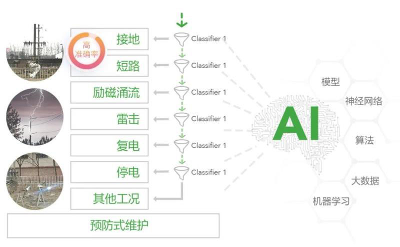 “云”側(cè)實現(xiàn)故障定位。通過將AI技術(shù)主要應(yīng)用于平臺端的智能大數(shù)據(jù)綜合分析系統(tǒng),實現(xiàn)線路故障區(qū)段精準(zhǔn)定位、線路工況識別、線路故障分類以及未來將要實現(xiàn)的故障預(yù)測等。最終,平臺還會把故障定位結(jié)果以短信和手機(jī)APP消息推送的方式發(fā)送給線路運檢人員,幫助他們快速查找到故障點。