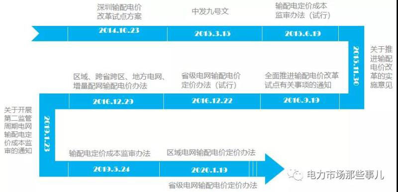 中發(fā)九號(hào)文發(fā)布之前,輸配電價(jià)改革試點(diǎn)工作已經(jīng)啟動(dòng),最早在深圳,下圖為輸配電價(jià)改革的時(shí)間點(diǎn):