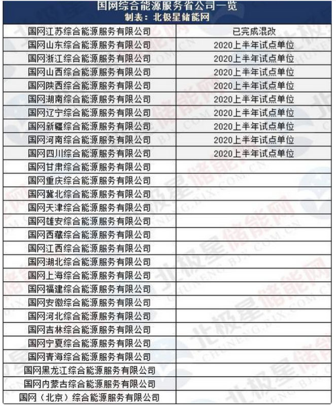 目前已注冊(cè)登記的國(guó)網(wǎng)省綜合能源有限公司、9家試點(diǎn)單位
