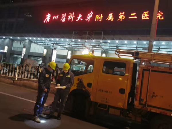 南方電網(wǎng)廣東廣州海珠供電局運(yùn)維班組人員到定點(diǎn)收治醫(yī)院廣醫(yī)二院開展保供電特巡特維,檢查電纜管廊情況,確保電纜運(yùn)行環(huán)境良好。