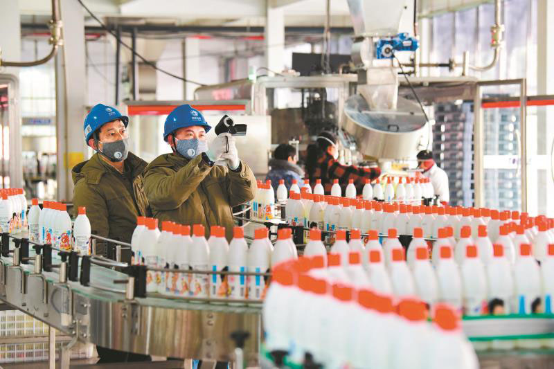 江蘇金湖縣供電公司員工通過紅外線測溫儀為一家84消毒液生產(chǎn)企業(yè)智能化車間檢查電氣線路設(shè)備。 梁德斌 攝