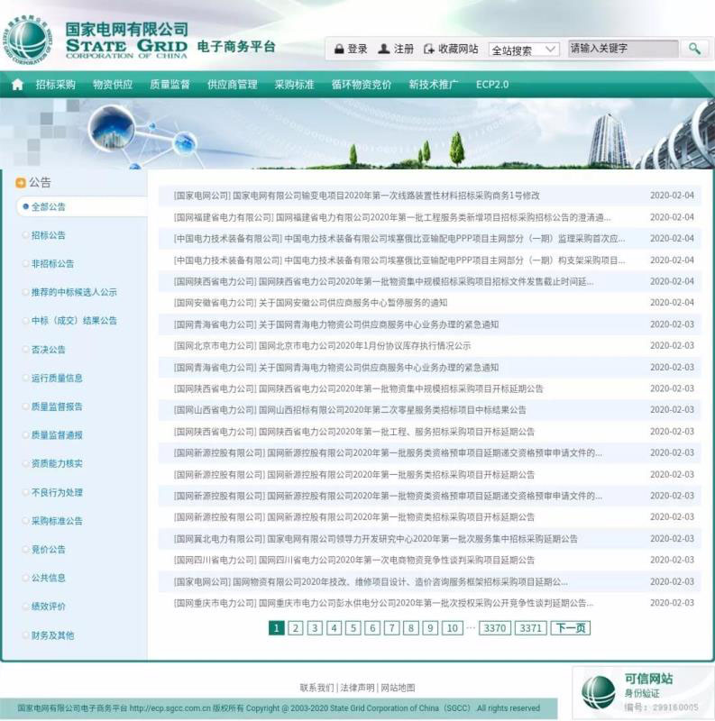 進(jìn)入2020年2月,國(guó)網(wǎng)電商平臺(tái)陸續(xù)發(fā)布了總公司及各個(gè)分公司招標(biāo)、開標(biāo)延期通知,此前已發(fā)布過具體招標(biāo)時(shí)間的各公司也大多修改了時(shí)間,具體投標(biāo)截止時(shí)間及集中遞交投標(biāo)文件時(shí)間另行通知。