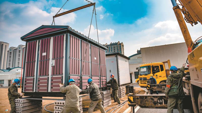 江夏供電公司總經(jīng)理陳剛介紹,進(jìn)場施工前,該公司與醫(yī)院建設(shè)設(shè)計(jì)單位進(jìn)行溝通后,擬定雙環(huán)網(wǎng)四回路同時(shí)供電高可靠性供電方案,充分考慮了各種制約工期因素。在其他單位入場前,率先進(jìn)行電纜通道破路埋管作業(yè);設(shè)備基座全部采用預(yù)制板,現(xiàn)場拼裝;對負(fù)荷需求進(jìn)行了科學(xué)預(yù)估,確保不因規(guī)劃變更而更改供電施工方案。“此外,雷神山醫(yī)院施工條件也相對較好,是原軍運(yùn)村停車場,我們把所有電力設(shè)備都布置在醫(yī)院外圍,在施工過程中與其他建設(shè)單位高度協(xié)同,減少交叉作業(yè)沖突矛盾,沒有出現(xiàn)任何停工滯工現(xiàn)象?!?