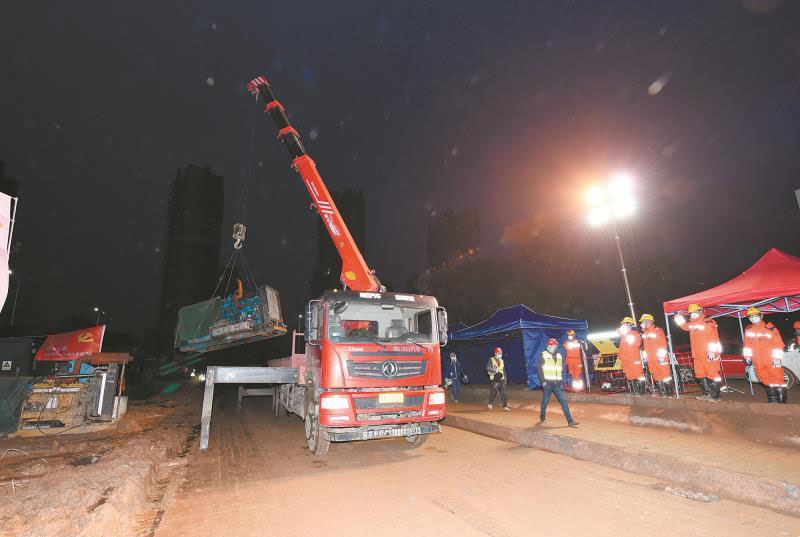 從下午直到深夜23時49分,隨著第24號變壓器送電完成,驗收人員如釋重負地露出了笑容:“送電成功了!”此時的火神山,在移動照明燈塔的照射下燈火通明,不遠處,箱式板房已初具規(guī)模,大型機械仍在不停運轉(zhuǎn)著。