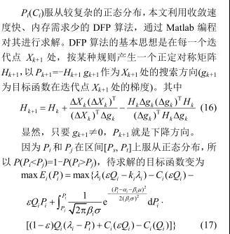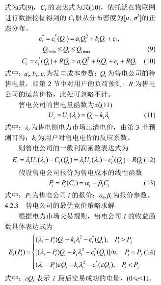 1 )行為空間 A i :售電公司的報價 P i 。P i 在電力交易中心限制的最高和最低價格之間,則行為空間 A i =[f 1 , f 2 ] , (f 1 , f 2 >0) 。