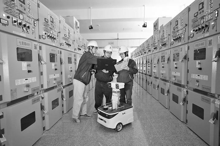 11月10日,在浙江金華110千伏站前智慧變電站內(nèi),一排排開關(guān)柜前,智能機(jī)器人通過電子眼開始了日常巡視。110千伏站前變電站是全國首座全戶內(nèi)智慧變電站,于當(dāng)天正式投運(yùn)。