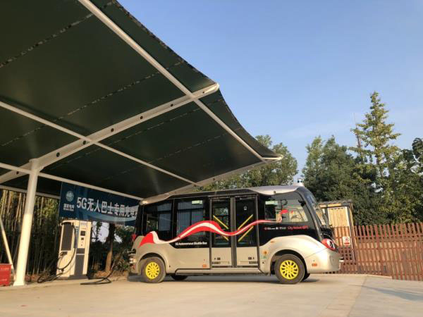 無人駕駛的“5G電動微公交”在進(jìn)行無感充電 王海燕 攝