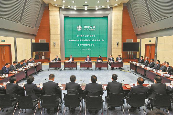 中國儲能網(wǎng)訊:10月8日,國家電網(wǎng)有限公司學(xué)習(xí)貫徹習(xí)近平總書記在慶祝中華人民共和國成立70周年大會上的重要講話精神座談會在京召開。會議深入學(xué)習(xí)習(xí)近平總書記在慶祝大會上的重要講話精神,動員激勵公司上下激揚愛國之情,砥礪強國之志,力踐報國之行,堅持以習(xí)近平新時代中國特色社會主義思想為指導(dǎo),進一步增強“四個意識”、堅定“四個自信”、做到“兩個維護”,加快建設(shè)“三型兩網(wǎng)”世界一流能源互聯(lián)網(wǎng)企業(yè),為實現(xiàn)“兩個一百年”奮斗目標(biāo)作出新的更大貢獻。公司黨組書記、董事長寇偉主持會議并講話。在家的公司領(lǐng)導(dǎo)班子成員出席會議。11位受邀參加國慶觀禮活動的公司系統(tǒng)代表參加會議。